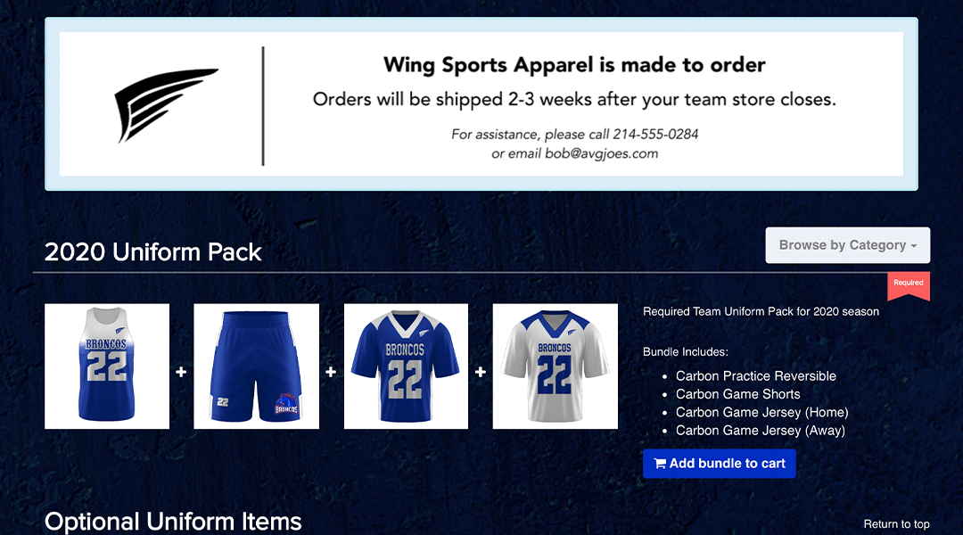 With OrderMyGear, we can make a quick pop up shop for your team to order gear! This can range from players packages which will group items like hats, shirts, and pants to single items that you would like to distribute to add to a fundraiser. This will allow you to have a central platform for all of your members to choose their sizes and color for any item you choose.